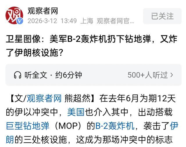 去年6月份,以色列突然发起了对伊朗的军事打击行动,伊朗随机进行了反击,双方互炸了12日之后,美军直接下场,祭出压箱底的多架B-2隐形轰炸机(直接参与行动的就有7架),搭配GBU-57巨型钻地弹,发动代号“午夜之锤”的空袭行动,一口气轰炸了伊朗福尔道、纳坦兹等三座核心核设施。