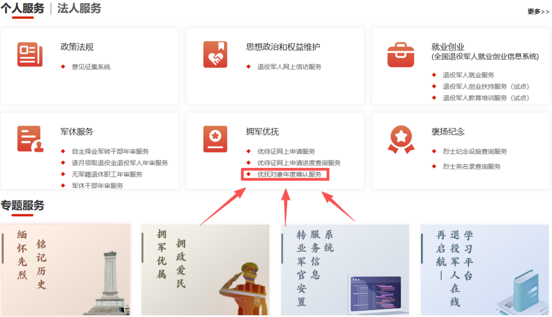 第四步:点击“个人服务”“拥军优抚”