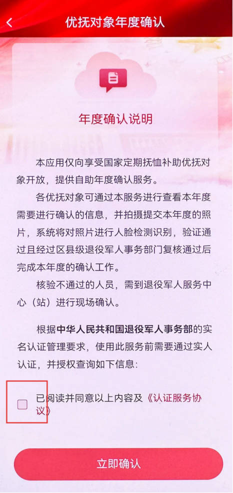 勾选“已阅读并同意”按钮,点击“立即确认”
