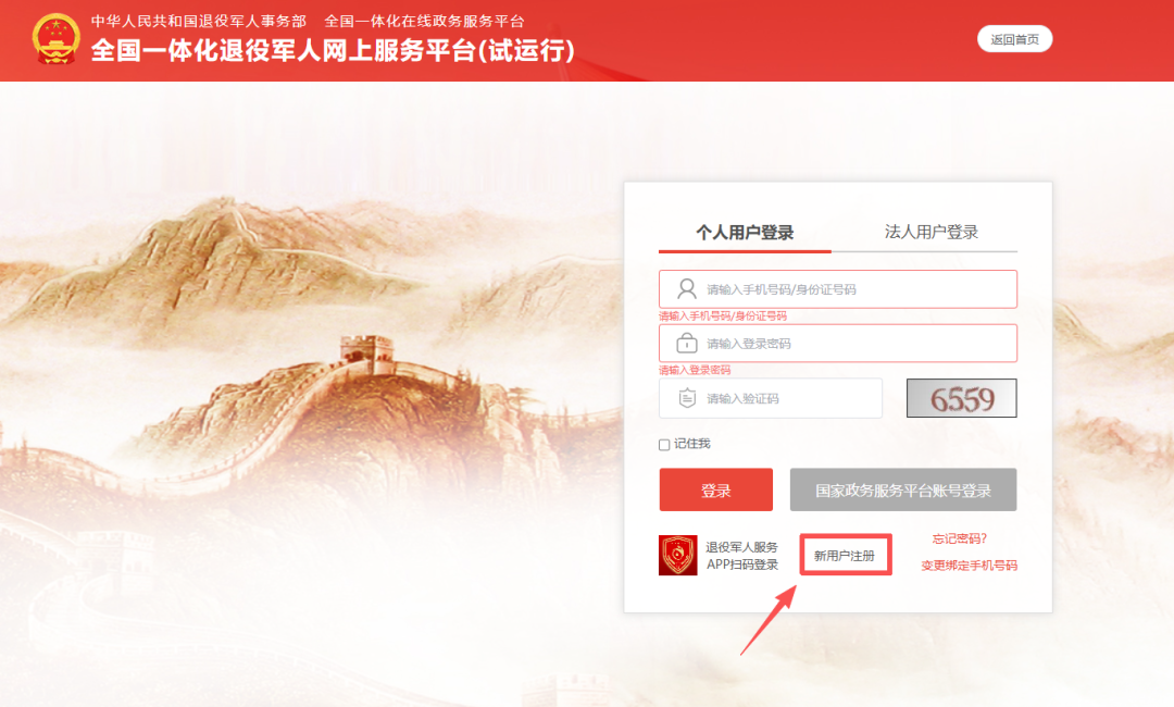 第三步:个人用户登录,新用户注册登录